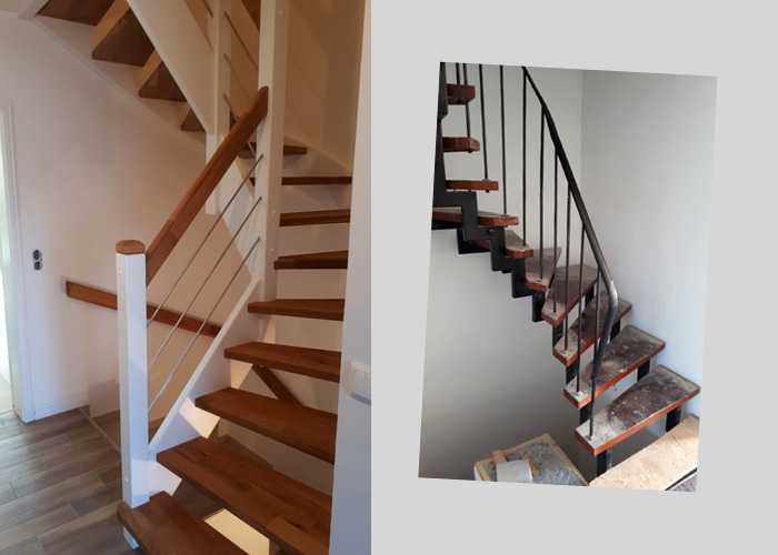 Wie stellen Sie sich Ihre neue Treppe vor? Im nebenstehenden Bild können Sie unschwer erkennen, welche Treppe die alte ist und welche nun das neue Herz des Hauses bildet. Unsere Treppen sind hochwertige Designstücke und geben Ihrem Heim eine ganz neue Wohnlichkeit. Alle Treppen und Detailmuster wie Geländer werden von uns selbst entworfen und in der eigenen Tischlermeister-Werkstatt individuell für Sie gefertigt. Kein Import und keine Treppe „von der Stange“. Alles "Made by Lenz in Fredenbeck".